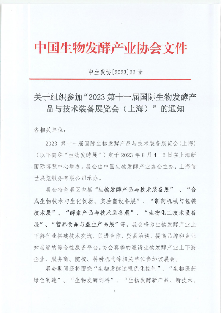 關(guān)于組織參加“2023第十一屆國際生物發(fā)酵產(chǎn)品與技術(shù)裝備展覽會(上海)”的通知