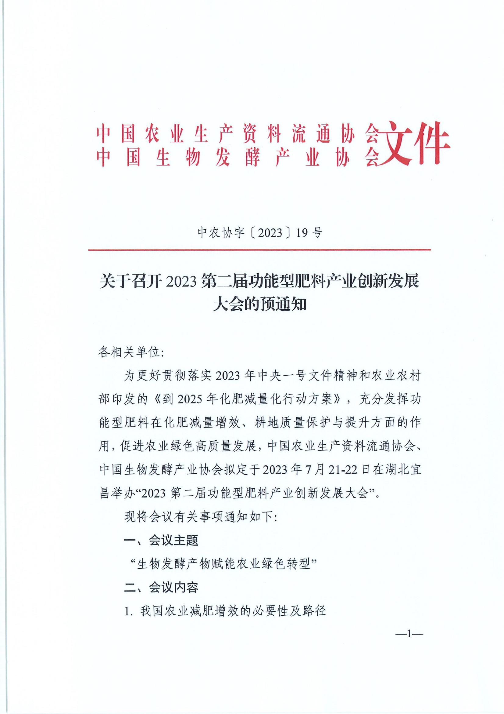 關(guān)于召開2023第二屆功能型肥料產(chǎn)業(yè)創(chuàng)新發(fā)展大會的預(yù)通知